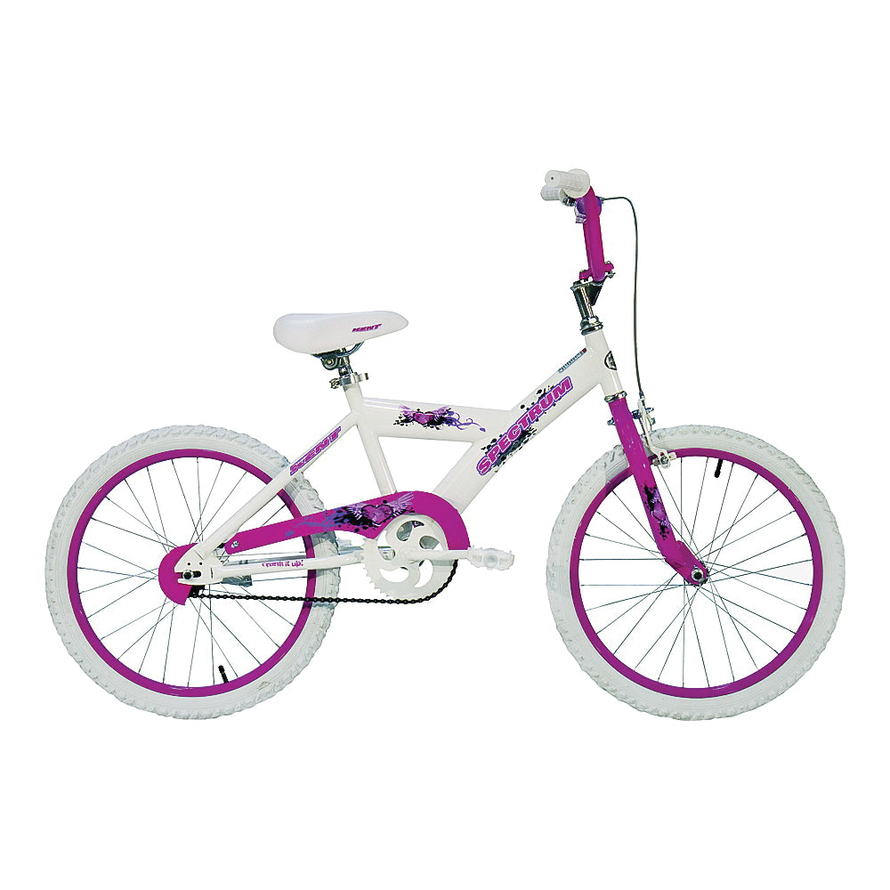 Get the Kent 20 in lucky star for your confident rider. This sturdy steel-framed bike has 20 in alloy wheels with pink painted rims and white freestyle tires. For braking versatility, your child can use the front hand brake or the rear coaster brake. The quick release clamp makes seat adjustment so easy, she can do it herself. When she gets to her destination, no need to drop her bike in the mud, kick stand is included. For safety, CPSC reflectors are also included. If your daughter wants a bike that rides as well as it looks, try the Kent 20 in lucky star.