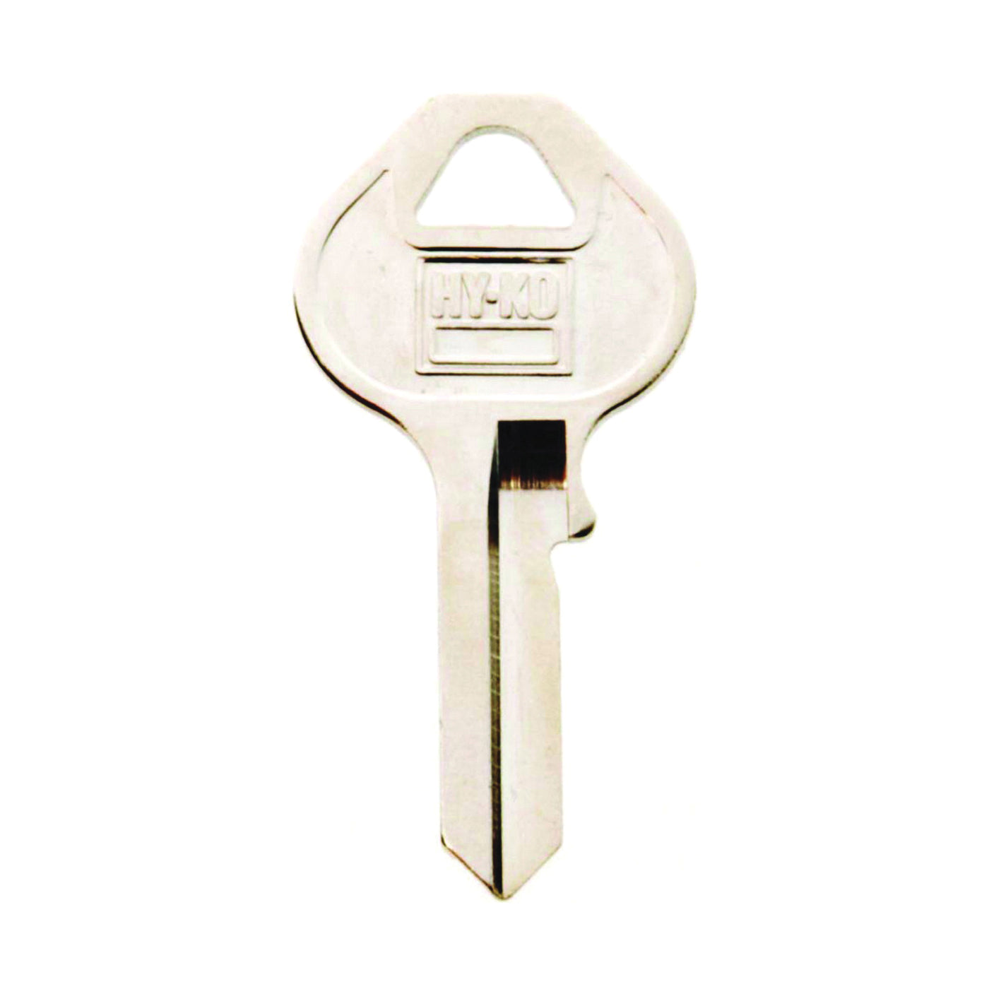 Hy-Ko Key Blank, Key Number: M10, Brass, Nickel, Dimensions: 1.889 in L x 0.087 in Thick, Suitable for: Master Locks and Padlocks