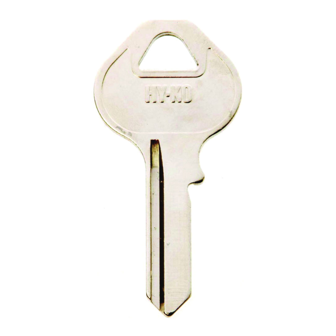 Hy-Ko Key Blank, Key Number: M4, Brass, Nickel, Dimensions: 1.889 in L x 0.934 in W x 0.087 in D, Suitable for: Master Cabinet, House Locks and Padlocks