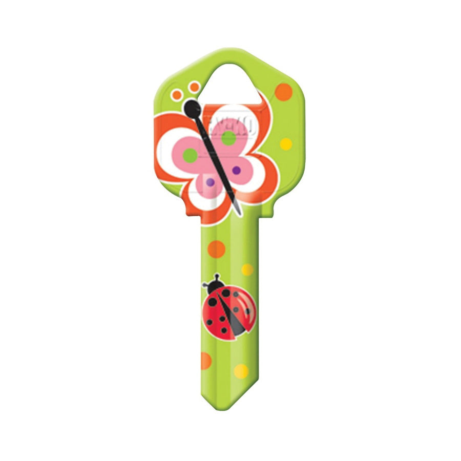 Hy-Ko Key Blank, Design/Theme: Ladybug, Key Number: KW1, Brass, Nickel-Plated, Dimensions: 0.87 in W x 0.08 in D x 2.05 in H, Suitable for: Kwikset KW1 Keyways