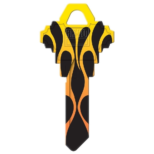 Hy-Ko Key Blank, Design/Theme: Flames, Key Number: SC1-18, Suitable for: Schlage SC1 Keyways