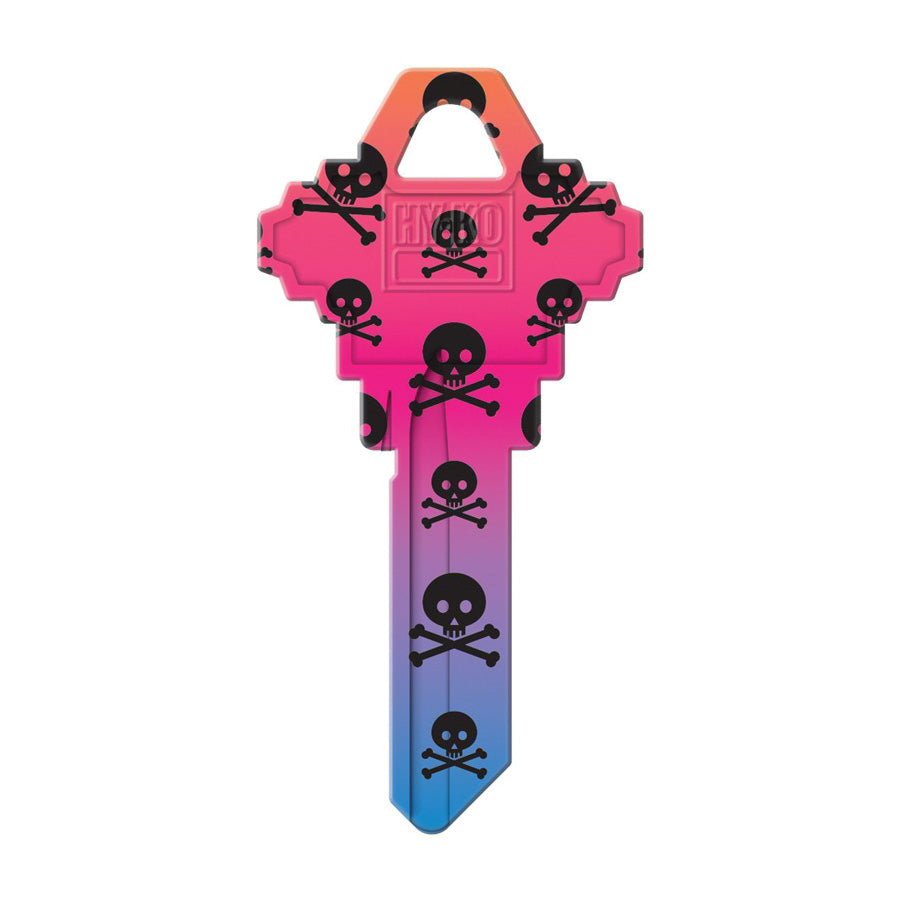 HY-KO Key Blank, Design/Theme: Skull, Brass, Dimensions: 1.07 in W x 0.09 in D x 2.1 in H, Suitable for: Schlage SC1 Keyways