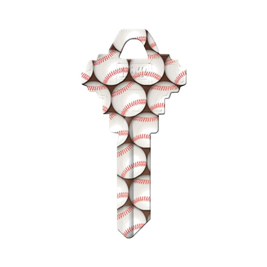 Hy-Ko Key Blank, Design/Theme: Baseball, Key Number: SC1, Brass, Dimensions: 1.07 in W x 0.09 in D x 2.1 in H, Suitable for: Schlage SC1 Keyways