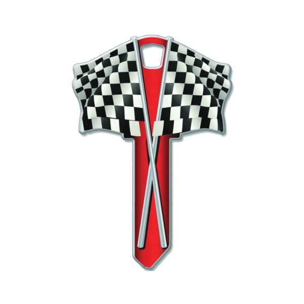 Lucky Line Key Shapes Key Blank, Design/Theme: Checkered Flag, Brass, Enamel, Suitable for: Kwikset Locks