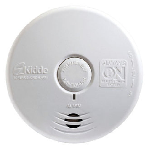 The Kidde P3010L is a 10 year, sealed battery, smoke alarm with photoelectric sensing technology and smart hush feature. The innovative design allows for automatic activation once the unit is attached to the mounting bracket there are no pull-tabs, no switches, everything is automatic. At the end of alarm life, the unit will chirp, indicating the alarm is in need of replacement. The customer can use a simple tool such as a screwdriver to deactivate the unit, stopping the chirp and making it safe for disposal. The P3010L contains a 10 year tamper proof battery that eliminates the need for battery replacement and ends worry over unauthorized battery removal. The alarm provides continuous protection from smoke and fire, even during power outages.