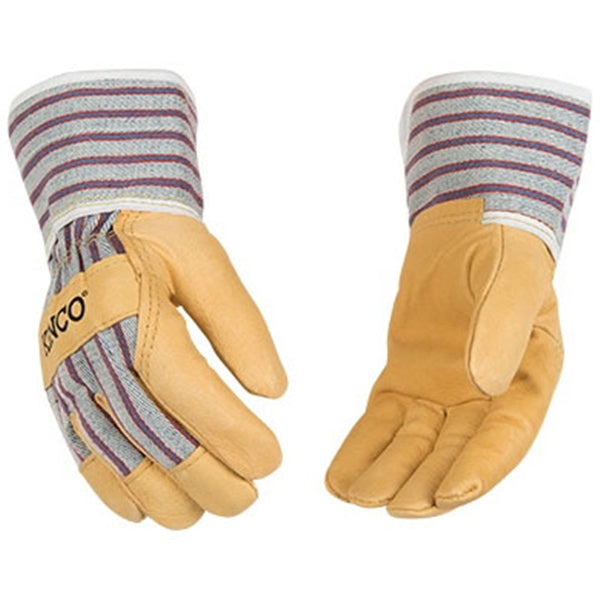 Kinco Protective Gloves with Safety Cuff, Leather Palm, Blue/Tan, Wing Thumb, Lined