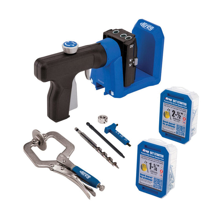 | Includes | Easy-Set Drill Bit, 6 in #2 Driver Bit, Easy-Set Stop Collar, Hex Wrench, Kreg Classic 2 in Face Clamp, (100) Kreg Pocket-Hole Screws |