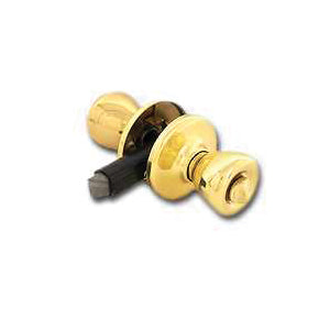 For use on interior bedroom and bathroom mobile home doors. Both bell-shaped knobs locked or unlocked by turn button inside. Outside knob unlocked by emergency key. 7/8 in edge bore. Door prep 2-1/8 in cross bore, 1 x 2-1/4 in latch face. Backset of 2-3/8 in standard and adjustable 2-3/8 in and 2-3/4 in optional. Thk doorness 1-3/8 to 1-3/4 in. Cylinder 5-pin. Faceplate 1 x 2-1/4 in. Strike of 2-1/4 in high full lip. Bolt 3/8 in throw. Reversible for right or left hand doors. ANSI/BHMA A156.2 Grade 3.