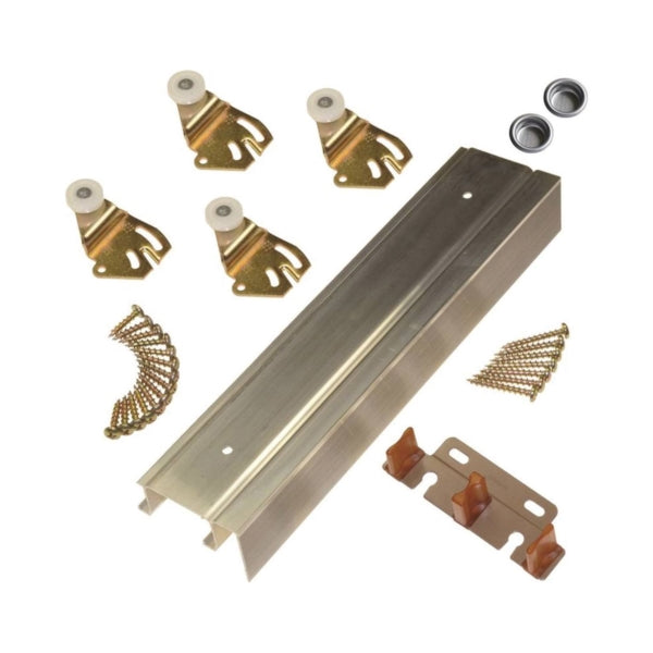 Includes (1) 2200F Track, (4) 2238 Hangers, (1) 2135 Door Guide, (2) 15US15 P Pulls