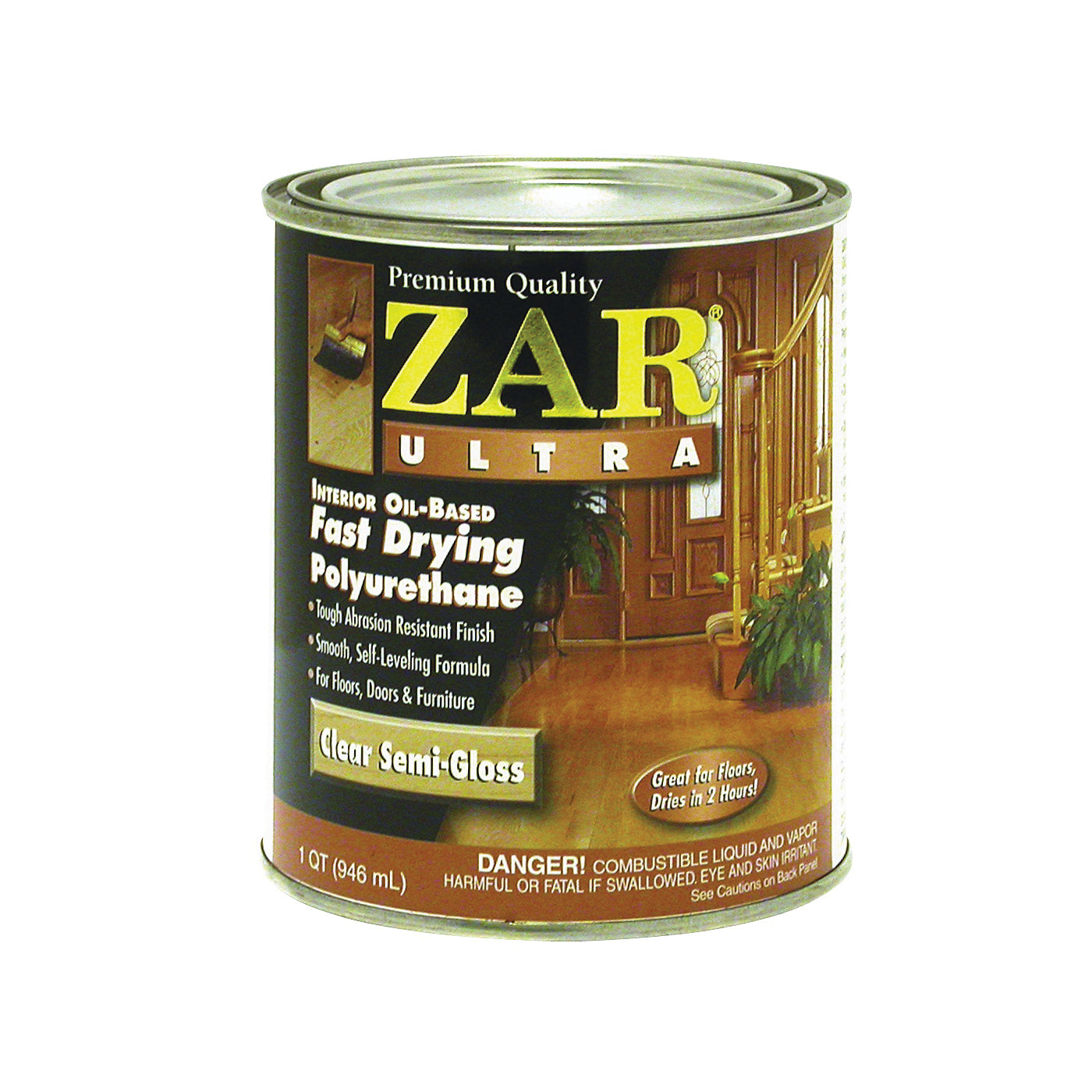ZAR® ULTRA polyurethane is an incredibly fast drying, oil-based polyurethane that dries to a smooth finish on bare wood, in just 2 hrs, with no brush marks. Featuring a tough, abrasion-resistant finish and self-leveling properties, it works beautifully on hardwood floors, cabinets, furniture and woodwork.