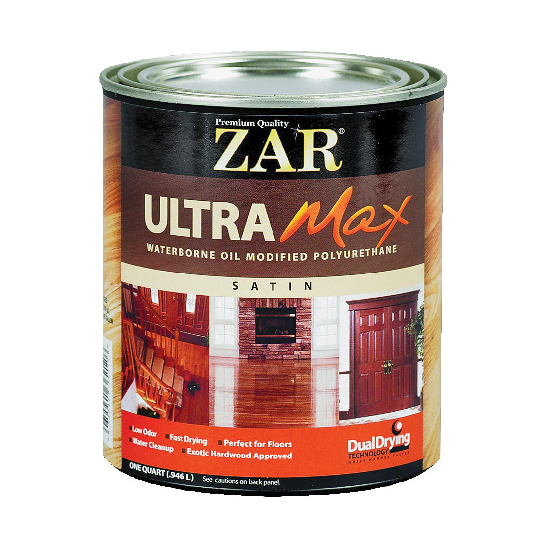 ZAR® ULTRA Max polyurethane features dual drying technology for a harder "through cure". Since you can recoat in just 2 hrs, it's the ideal choice for heavily used areas. Self-leveling properties make it ideal for creating smooth finishes on floors, cabinets, furniture and woodwork. The low odor formula offers excellent hardness and mar resistance and delivers outstanding wear and durability. ZAR® ULTRA Max polyurethane cleans up quickly and easily with soap and water. Environmentally safe, ZAR® ULTRA Max polyurethane is exotic hardwood approved and ideal for use on Teak, Brazilian Walnut and other similar wood species. Natural ambering enhances wood tones.