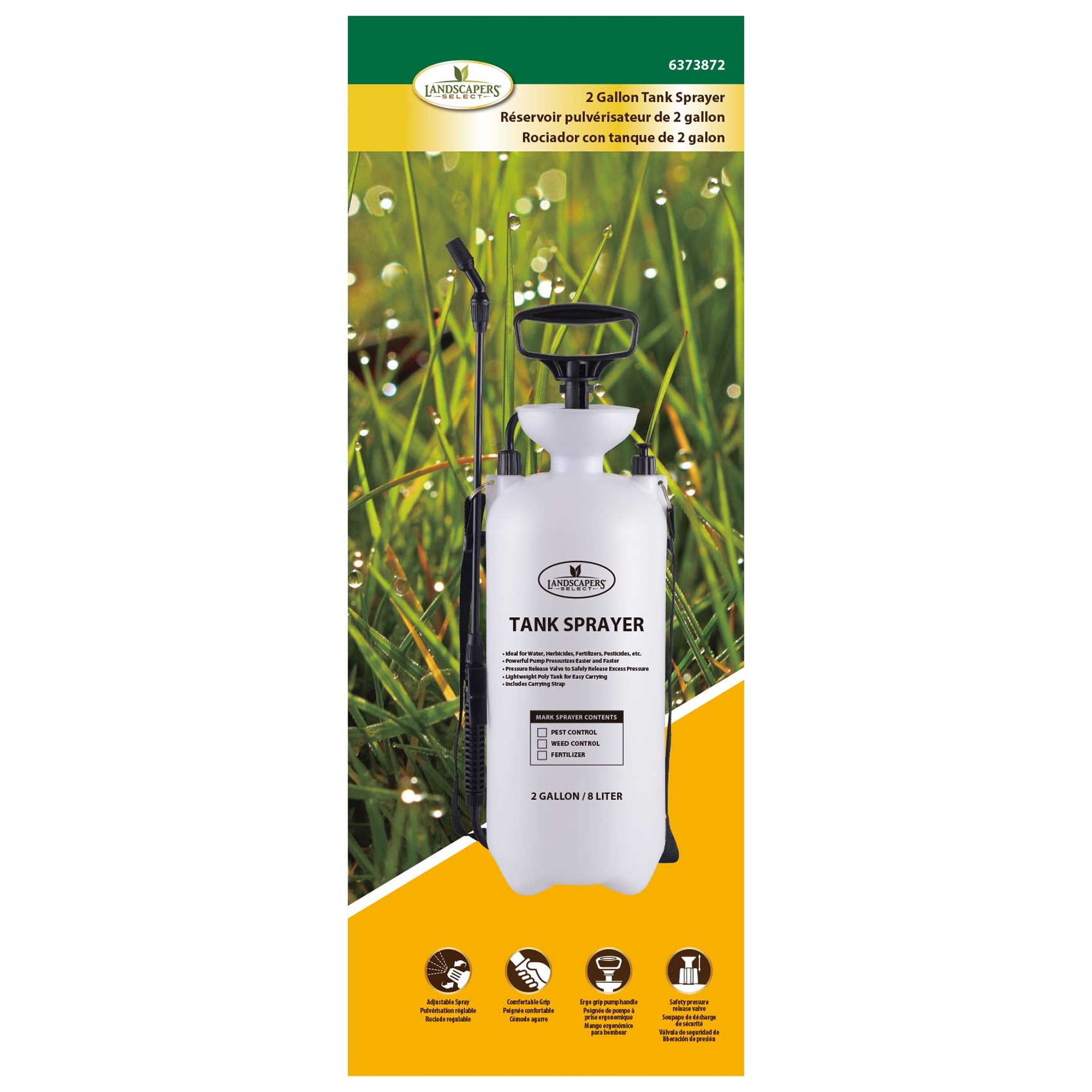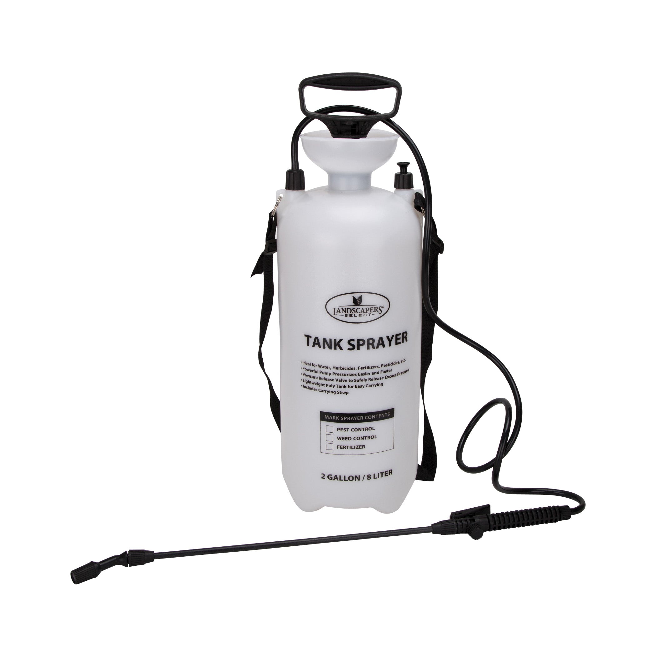 General-purpose pressure sprayer ideal for spraying water, fertilizers, herbicides, pesticides and much more. Sprayer wand with adjustable sprayer nozzle and On/Off trigger lock. Pump and sprayer constructed of non-corrosive polyethylene, heavy-duty hose.