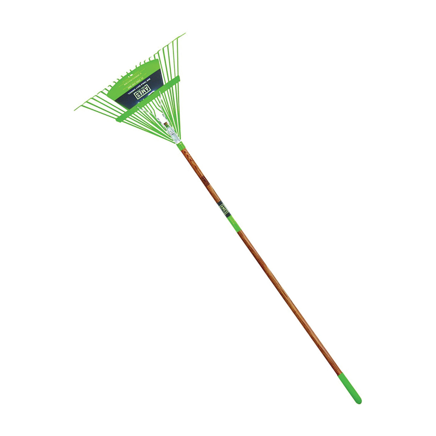 Ideal for clearing leaves and debris from lawns. The flexible steel tines will pull out thatch for a healthier lawn. The steel head is bolted to the handle for a secure connection while raking. 6 in cushioned grip. Dimension of 22 in W x 2-1/2 in D x 65 in H.