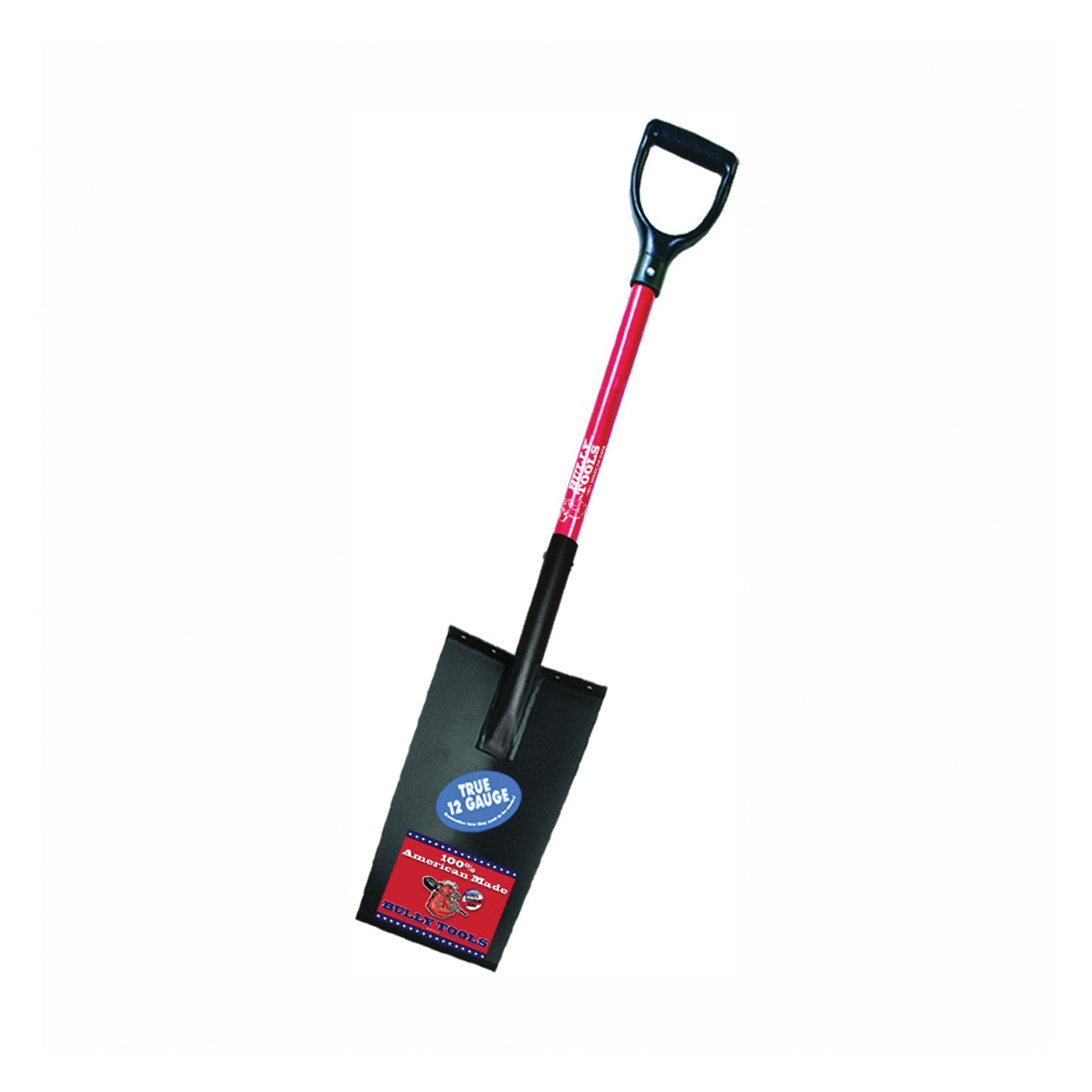 100% American made. 12 ga edging and planting spade. Fiberglass D-grip handle. Closed back, reinforced handle, extended length ferrule increases strength. Wide forward step provides greater control. Blade size of 7-1/2 in x 13 in. Handle size of 27 in. Tool length of 40 in. Commercial-grade. Extra thick 12 ga steel blade. Closed back design prevents debris build-up. Triple wall fiberglass with wood reinforcement. Extra wide comfort no-break D-grip with no-slip texture.