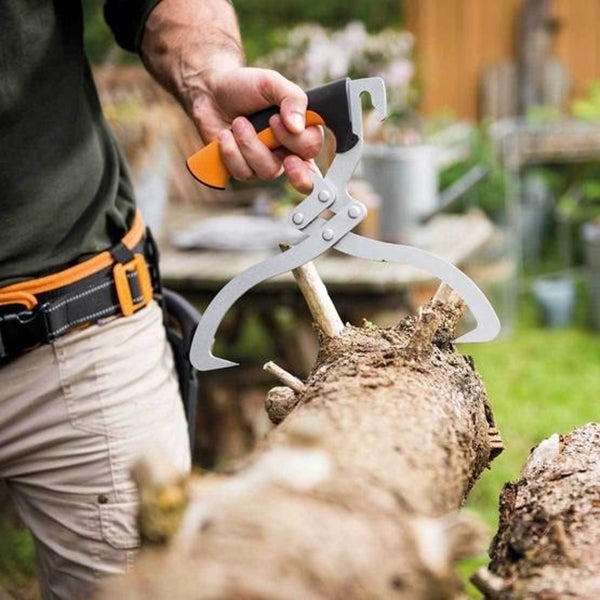 Quickly carry and stack logs with rugged, boron steel tongs featuring a convenient release trigger for easy one-handed use. Prepare and organize firewood faster with a durable pair of log tongs that allows you to pick up and position logs up to 12 in Dia with one hand. Constructed of hardened boron steel, the tong's sharpened tips bite into bark for a secure hold, while a finger trigger releases wood in an instant. Comfortable handle sculpting features a non-slip grip and a flared end for improved control and insulation against the cold. Plus, a durable holster simplifies storage and transportation.
