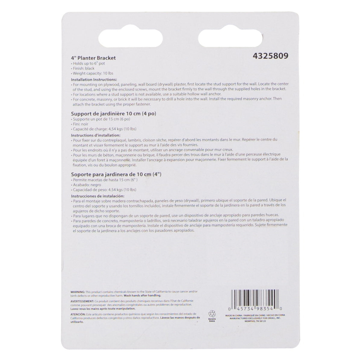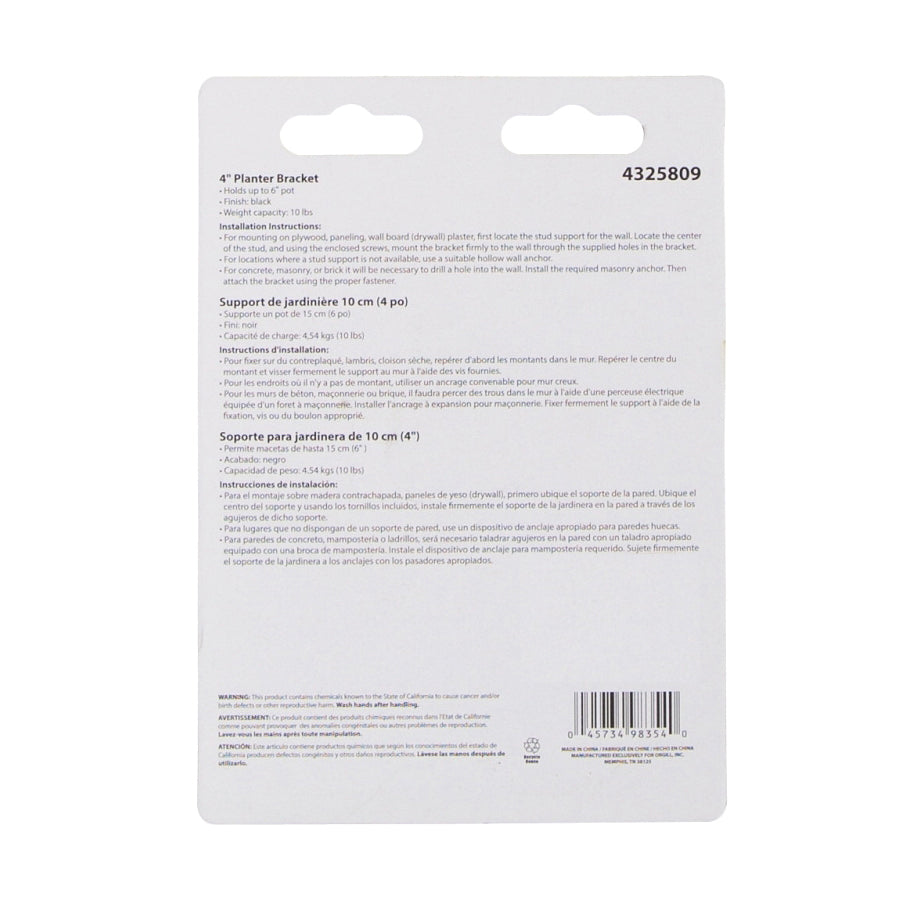 • Landscapers Select GB0173L Plant Bracket, 4-1/4 L, Steel, Black, Wall Mount Mounting