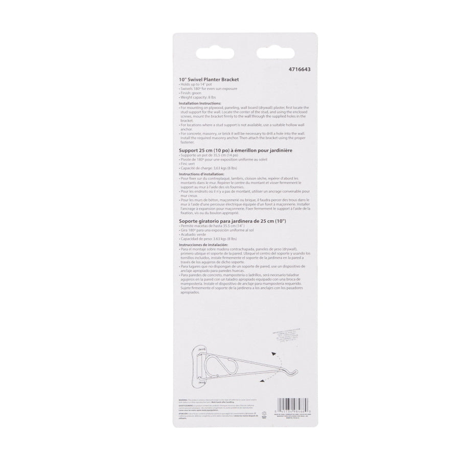 • Landscapers Select GB0223L Planter Bracket, 10-3/8 L, Steel, Forest Green, Wall Mount Mounting