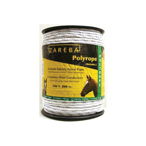 Our lightweight and convenient Zareba® Polyrope 656 ft contains six strands of electrical conductors. It's easy to install, repair and splice. It has a breaking load of 820 lb. Not designed to function under extreme tension and must be used in conjunction with a permanent fence.