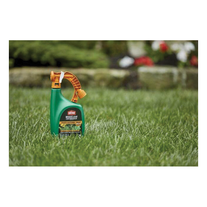 Ortho WEEDCLEAR Lawn Weed Killer, 32 oz Net Content, Bottle Container, Liquid Form, Dark Brown, Compositions: dimethylammonium 2,4-dichlorophenoxyacetate, 8-Quinolinecarboxylic acid, 3,7-dichloro, Flammability: 0, Spray Application Method