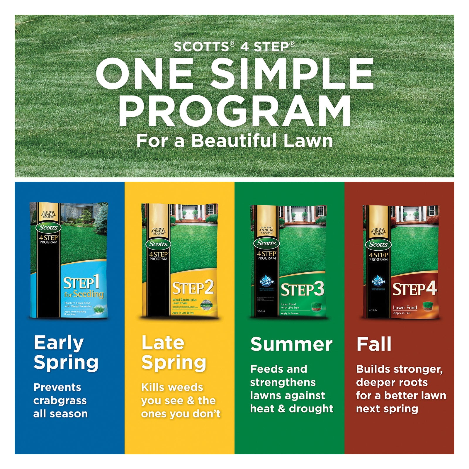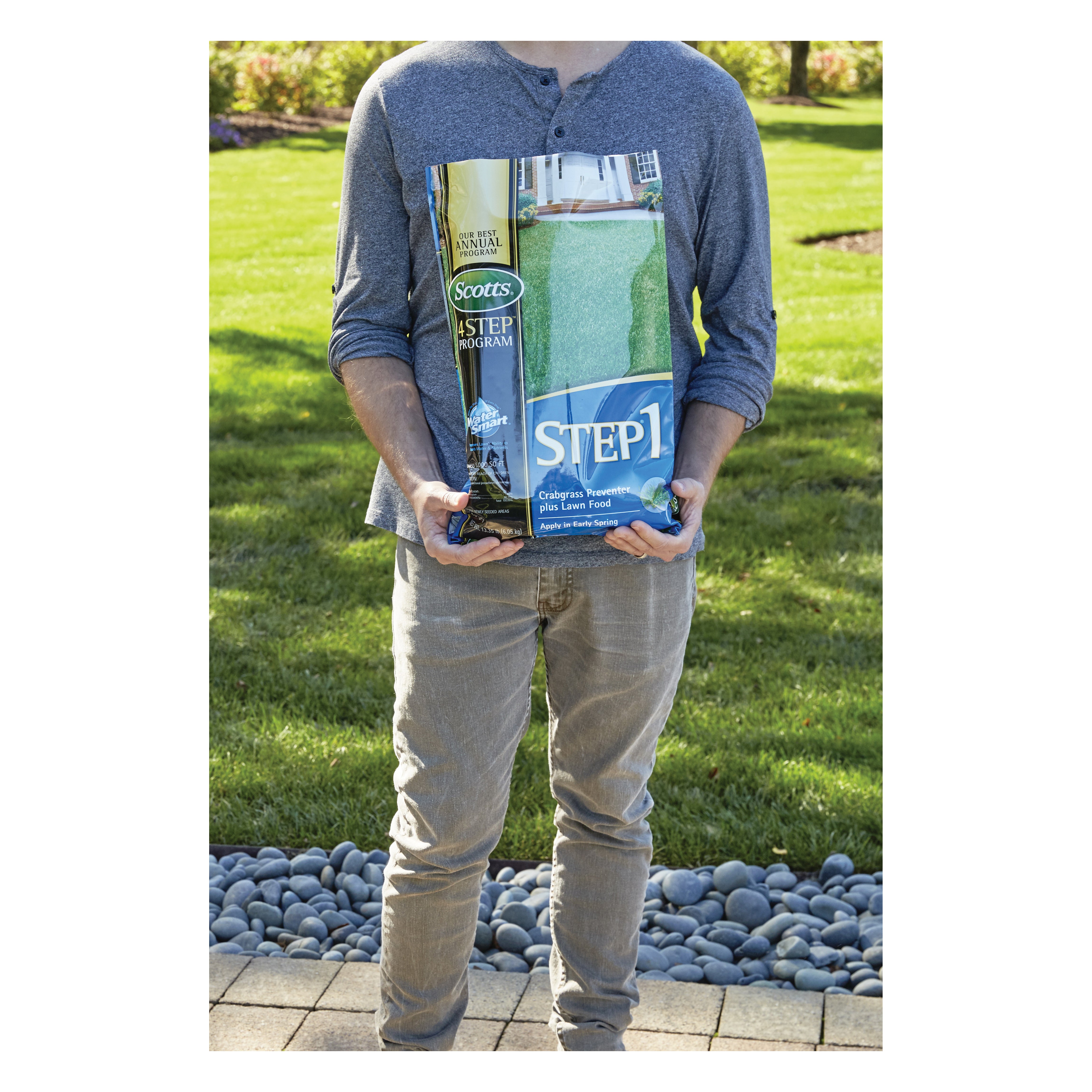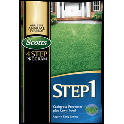 Scotts® STEP® 1 crabgrass preventer plus lawn food can improve a lawn's ability to absorb water and nutrients. Apply in early spring for a fast green-up after winter. It also controls crabgrass for up to four months. Utilize the entire Scotts® four-step program for a better lawn.