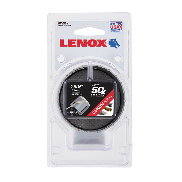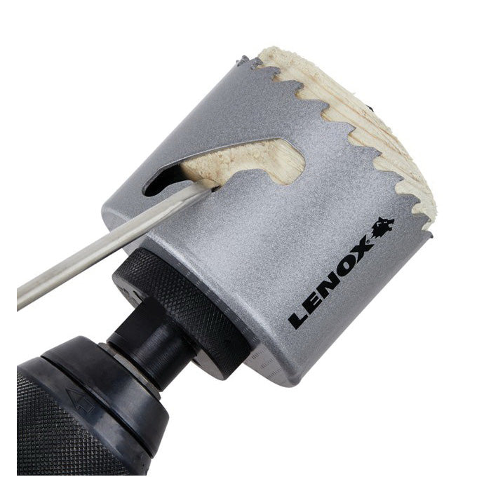 Lenox Speed Slot Hole Saw, 500 rpm Aluminum, 190 rpm Stainless Steel, 70 rpm Fiber Glass, 140 rpm Ceramic Tile, 60 rpm Iron Speed, 2-9/16 in Diameter, Carbide Cutting Edge, Applicable Materials: Abrasives, Cast Iron, Stainless Steel, Steel, Wood, Suitable for: Snap-Back 2L, 6L Arbor Models