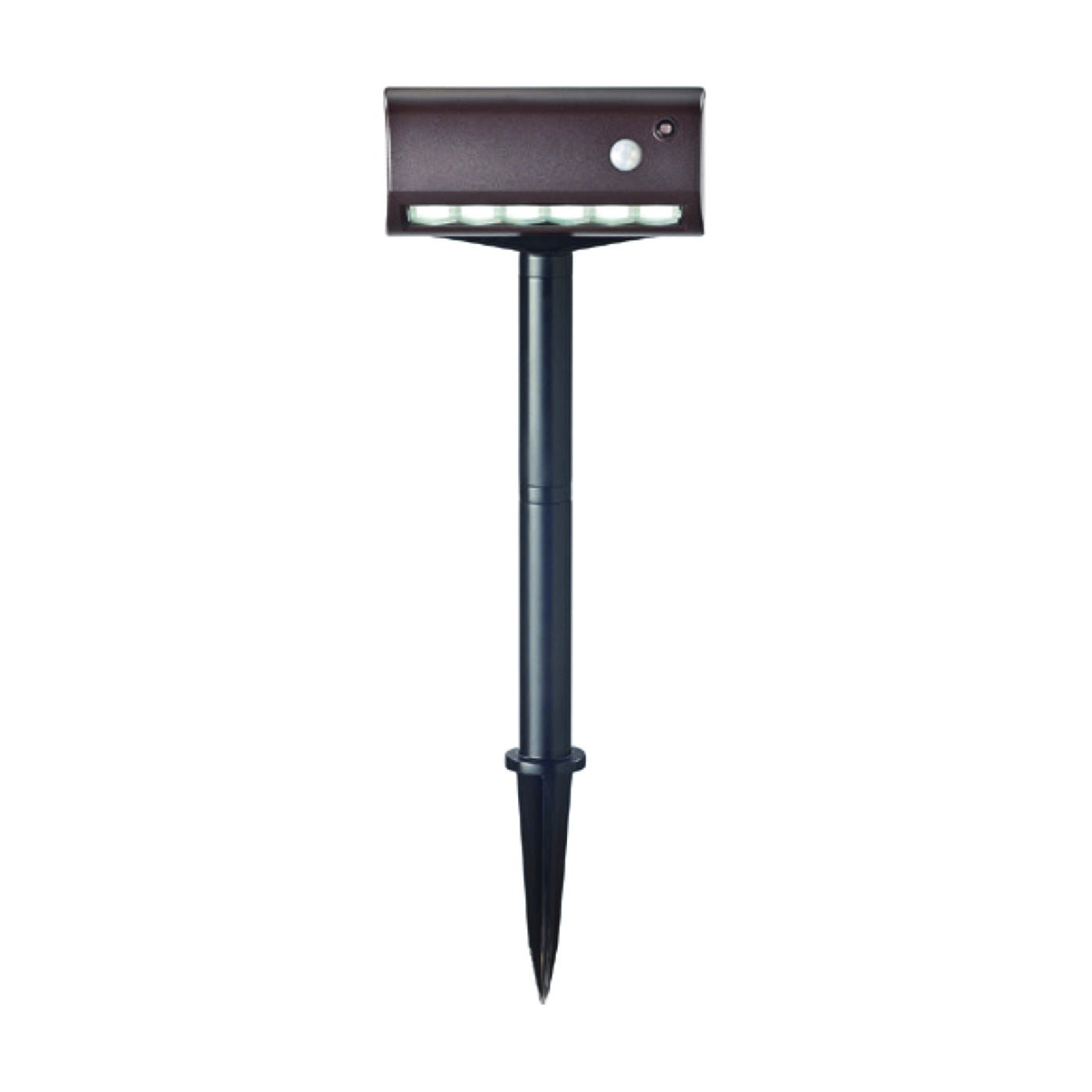 Motion-sensing light casts a broad, bright beam. It comes with a mounting bracket to attach it to decks and walls and a detachable stake. Weatherproof, outdoor/Indoor. 42 Lumens, 4 AA batteries (not included).