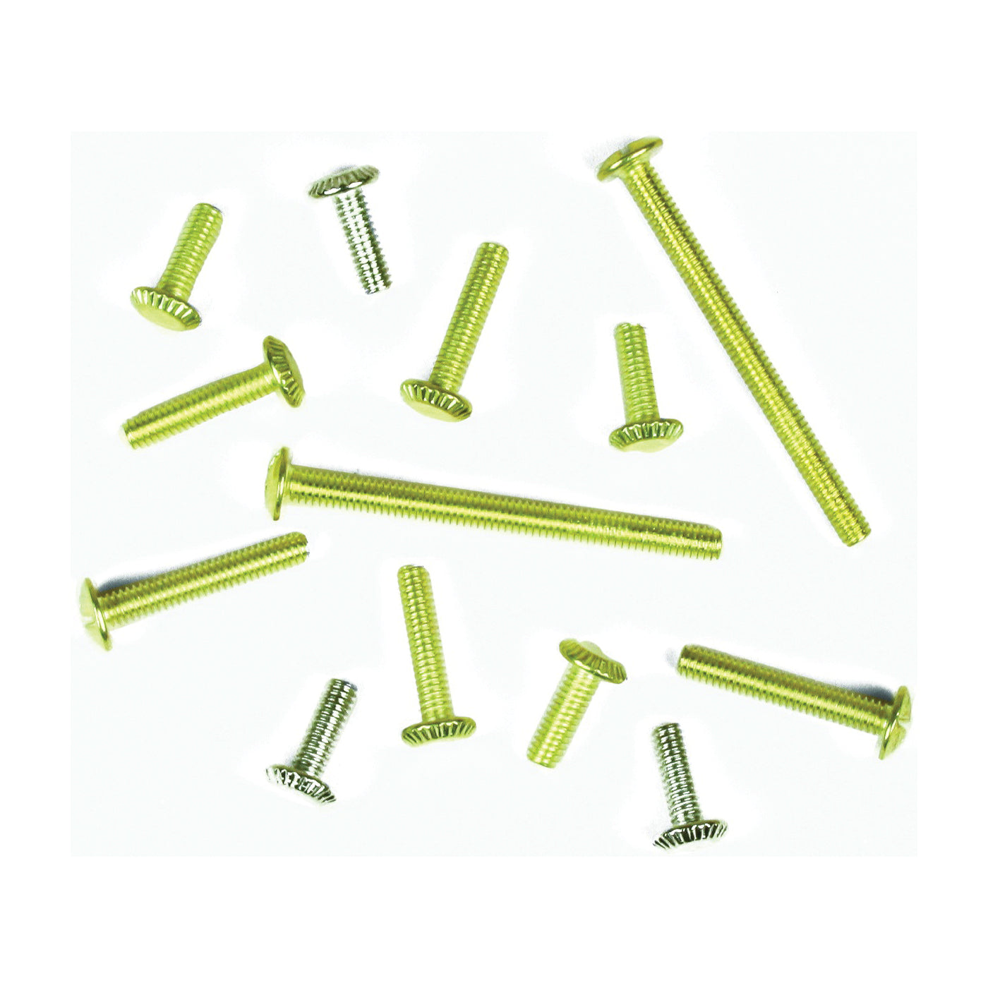 Used for holding lamp parts in place. Contains three brass-plated 8/32 in x 1/2 in knurled head screws, nickel-plated 8/32 in x 1/2 in knurled head screws and brass-plated 8/32 in x 3/4 in knurled head screws and two brass-plated 8/32 in x 1 in slotted machine screws and brass-plated 8/32 in x 2 in slotted machine screws.