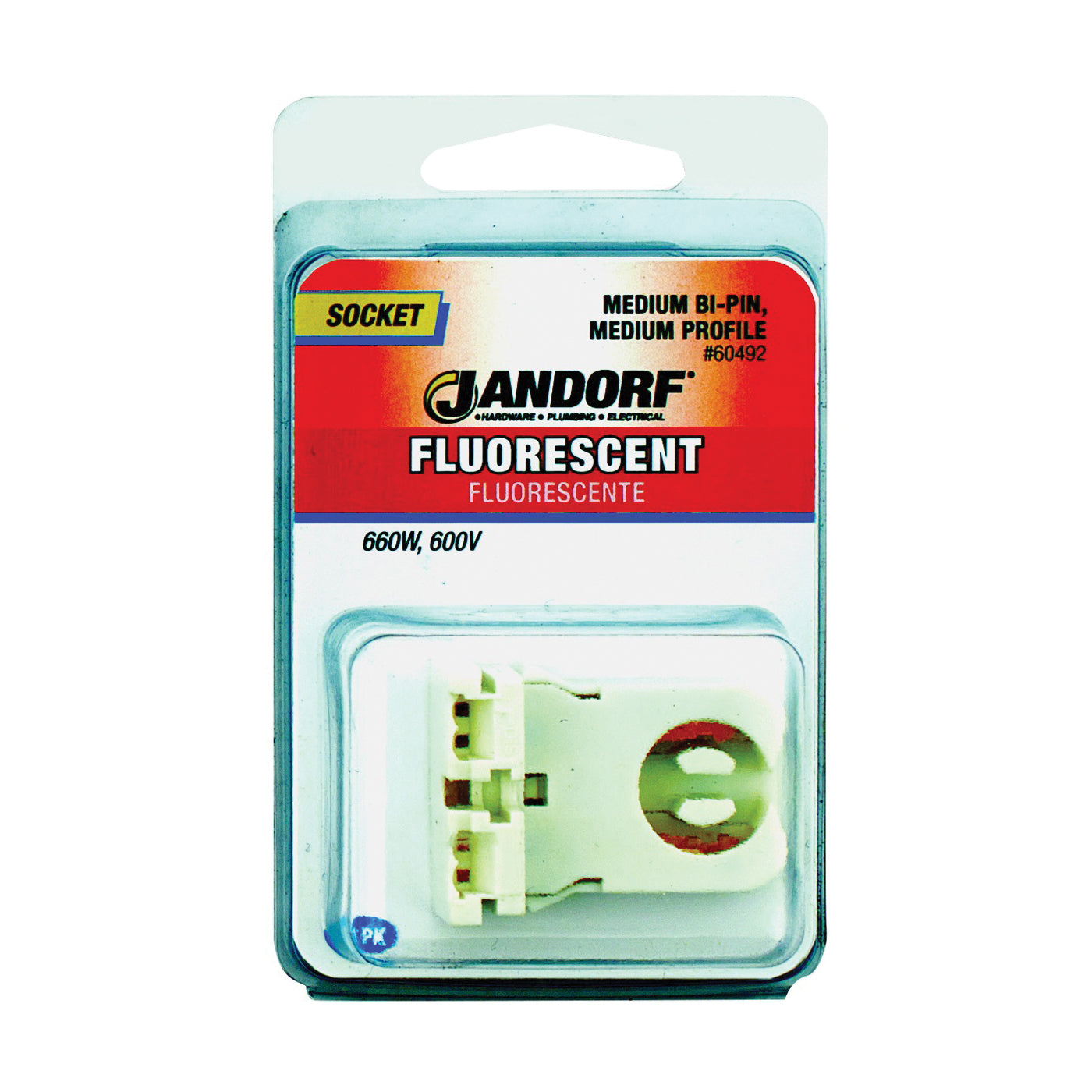 Jandorf Lamp Socket, Medium Profile, Lamp Type: Fluorescent, Base Type: Medium G13, 600 V, Wattage Rating: 660 W, Number of Pins: 2