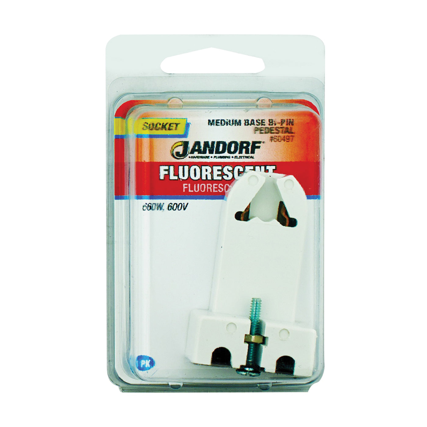 Jandorf Lamp Socket, Medium Profile, Lamp Type: Fluorescent, Base Type: Medium G13, 600 V, Wattage Rating: 660 W, Number of Pins: 2