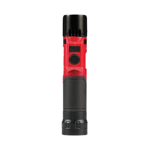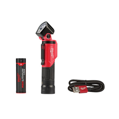 The USB rechargeable pivoting flashlight is powered by REDLITHIUM® USB, giving you high-output light for any task from any position. The flashlight features spot and flood beam modes allowing it to change from a high powered flashlight to a versatile task light with the press of a button. It has 500 Lumens of TRUEVIEW™ high-definition output and a 155 m (377 feet) spot beam distance, giving you the ability to search, trace or inspect better from further away. In flood mode, the LED flashlight's 110 deg pivoting light head and magnet base allows you to use the task light hands-free while directing the light exactly where you need it. Maximize brightness or extend runtime with high and low flood mode options with up to 10 hr of runtime. Turn the flashlight into a right angle light with a built-in pocket clip designed for chest pockets and straps. The pivoting head LED flashlight is powered by our REDLITHIUM® USB batteries. The batteries can be charged while inside the flashlight via micro USB or swapped out with another REDLITHIUM® USB battery for virtually no downtime. The USB rechargeable pivoting flashlight is great for any trade professional looking for the ultimate versatility in a light and is covered by a limited lifetime warranty.
