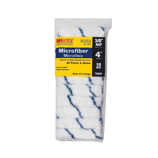 WHIZZ Mini Roller Cover, 3/8 in Thk Nap, 10-1/2 in L, Microfiber Cover, 4 in Core, Surface Type: Semi-Smooth, Smooth