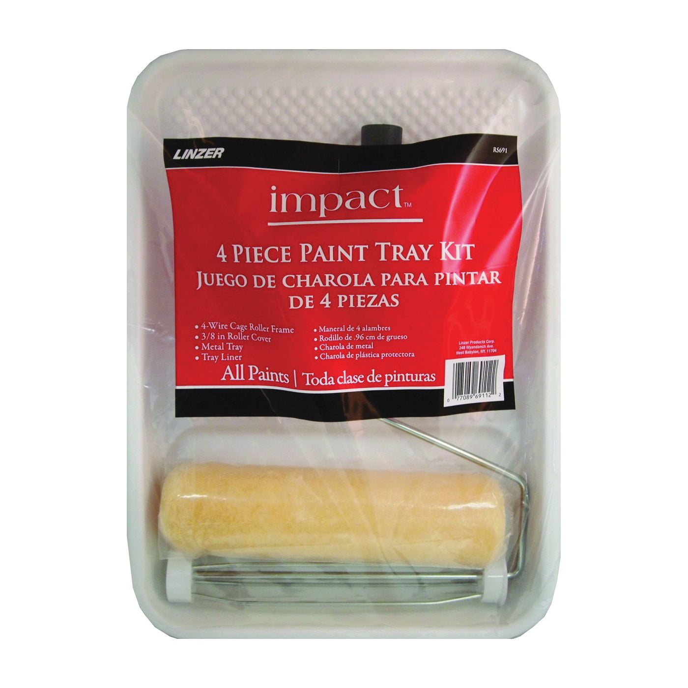 Includes 4-wire cage roller frame, 3/8 ft nap roller cover, metal tray and tray liner.