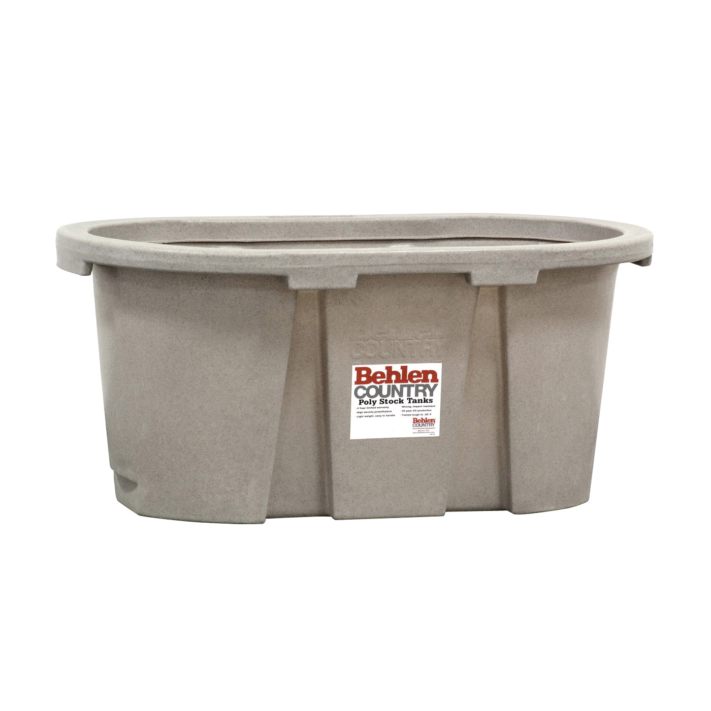 One-piece molded all-poly tank. Extra heavy-duty, molded rim for additional strength, with "sealed" top lip for easy dumping. Heavy-duty, molded-in aluminum drain fitting and 1-1/4 in poly drain plug. Poly is FDA food-grade approved, tested to -20 deg F, corrosion-free, impact-resistant and recyclable. Tank contains the proper amount of UV inhibitor to prevent deterioration from sunlight. Ideal for all watering needs.