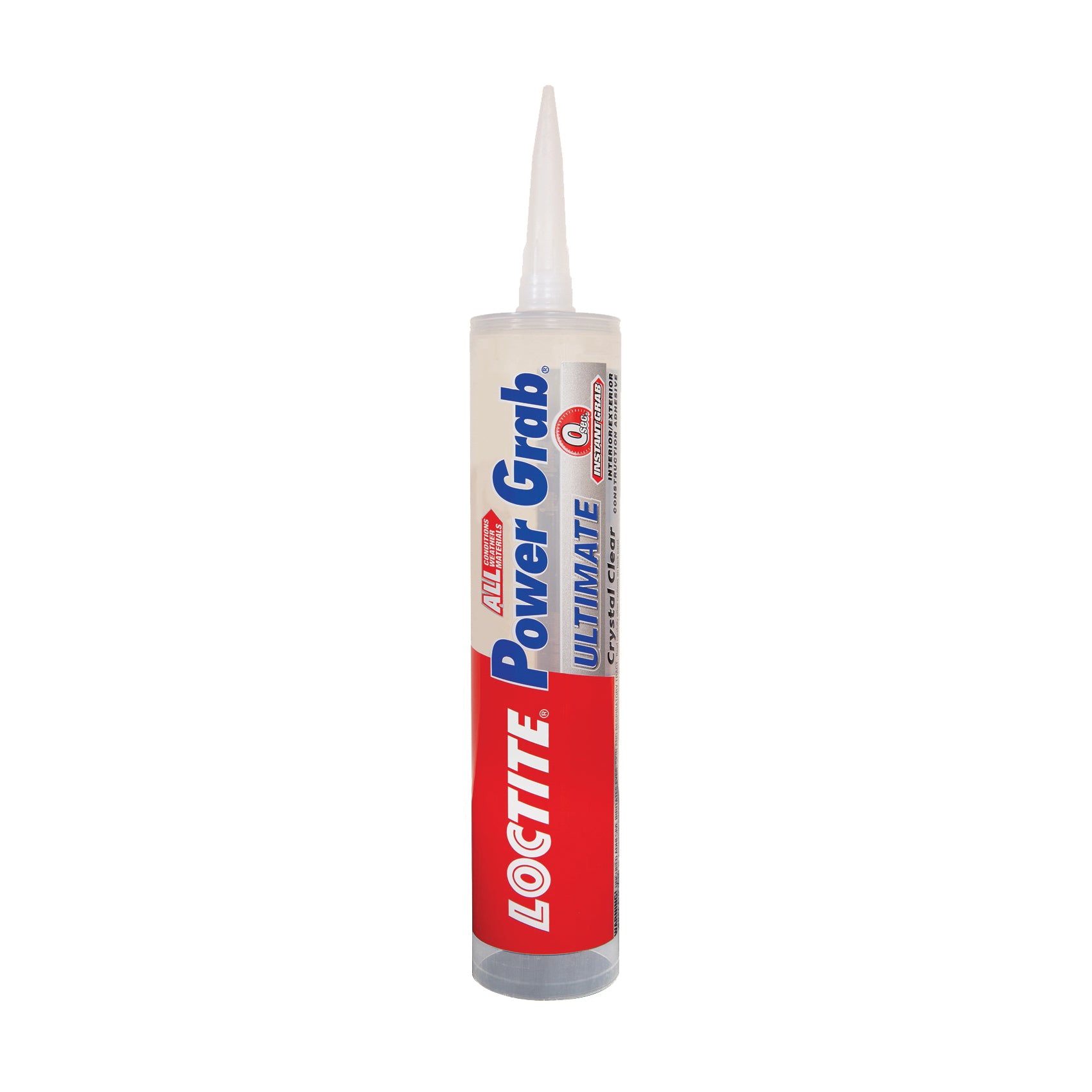 Loctite Construction Adhesive, Paintable, 9 oz Net Content, Alcohol Odor/Scent, Clear, 27.6 ft Coverage Area, Compositions: Trimethoxyvinylsilane, 3-Trimethoxysilylpropyl Methacrylate, 1.6 to 1.7 Specific Gravity, 40 to 140 deg F Application, 24 hr Functional Cure Time