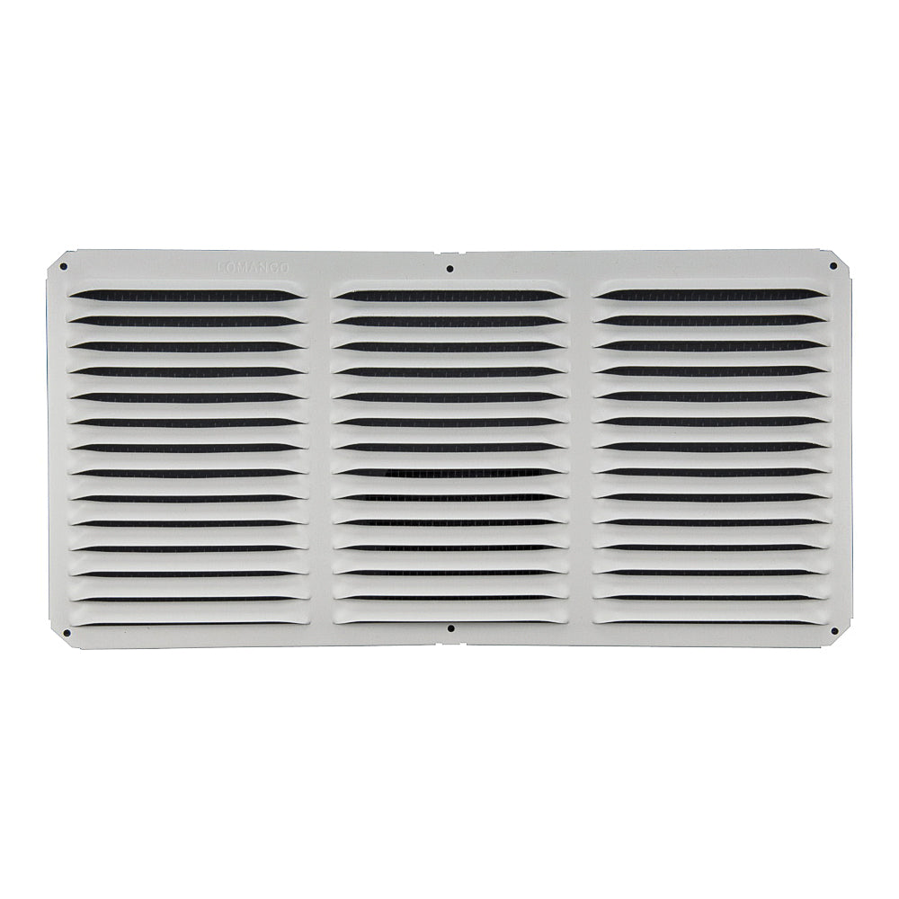 All aluminum, rust-free construction, overall size of 8 in x 16 in louver, 8 x 8 perma-coated aluminum screen attached, pre-drilled holes, unique eyebrow designed louvers provides maximum ventilating capacity with weather infiltration, 65 sq-in of net-free area.