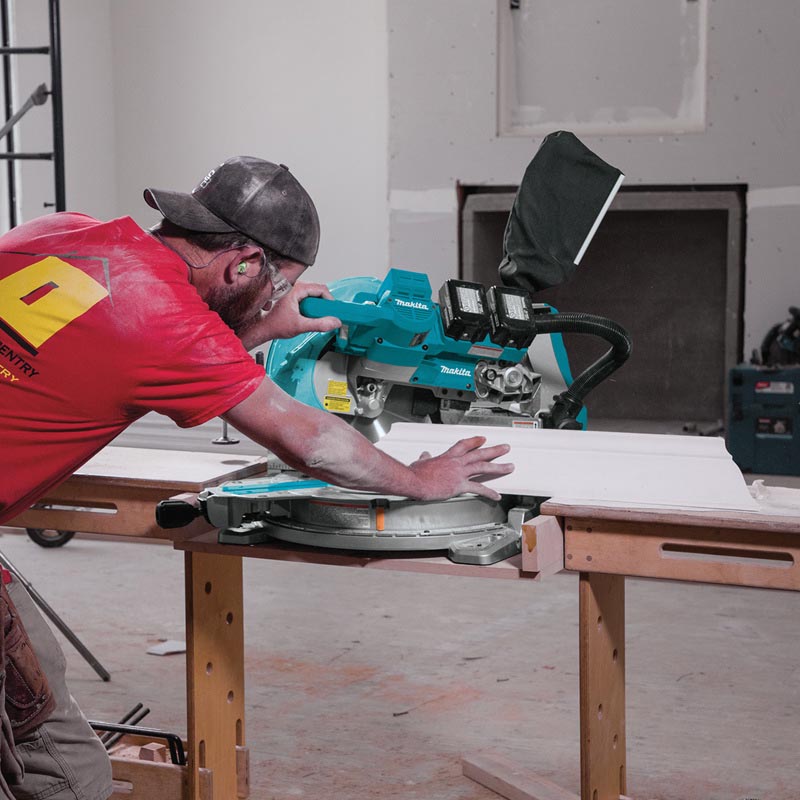 Makita is a pioneer in brushless motor engineering, battery technology and miter saw innovation and has combined this expertise in the 18 V X2 LXT® (36 V) Lithium-Ion brushless 10 in dual bevel sliding compound miter saw. Its powered by two 18 V Lithium-Ion batteries for 36 V power and performance, but without leaving the 18 V LXT® platform. Makita brushless motors are engineered for up to 50% longer run time, increased power and speed and longer tool life. The XSL06 has an efficient BL™ brushless motor that delivers up to 4400 rpm for fast and efficient cutting, with Automatic Speed Change™ technology to adjust cutting speed and torque under load for optimum performance.