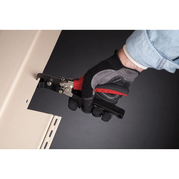 The snap lock punch for vinyl siding produces wider, more prominent rectangular tab projections for securing vinyl skirting or siding to finishing trim. The raised tabs grip a greater surface area and guard against dislodging due to relaxation of vinyl from heat or blowout during times of high pressure and wind. Constructed of hardened steel stampings and rugged investment cast alloy steel jaws with rust-resistant nickel plate and black oxide finishes to ensure long service life.