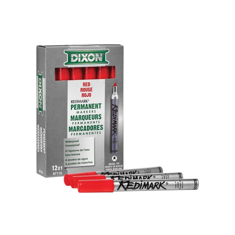 Excellent durability! 6 in metal barrel is ideal for tough environments. Won't crack, melt or break. Leak-proof, seamless metal body, heavy-duty chisel felt tip with anchored nib construction. Permanent, alcohol-based, fast-drying ink is fade-resistant on glass, plastic, metals, wood, cellophane, paper and more.