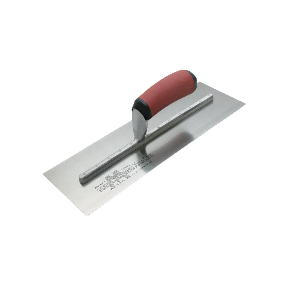 High carbon steel blade. Blade has slight concave bow for feathering mud joints. Aluminum alloy mounting is lightweight but very strong. Flexible blade is tempered, ground and polished. Curved resilient DuraSoft® handle provides a soft feel, reduces fatigue and offers excellent durability. Blade fastened to the mounting with hardened stainless steel rivets. Diamond shank design keeps the handle from twisting.