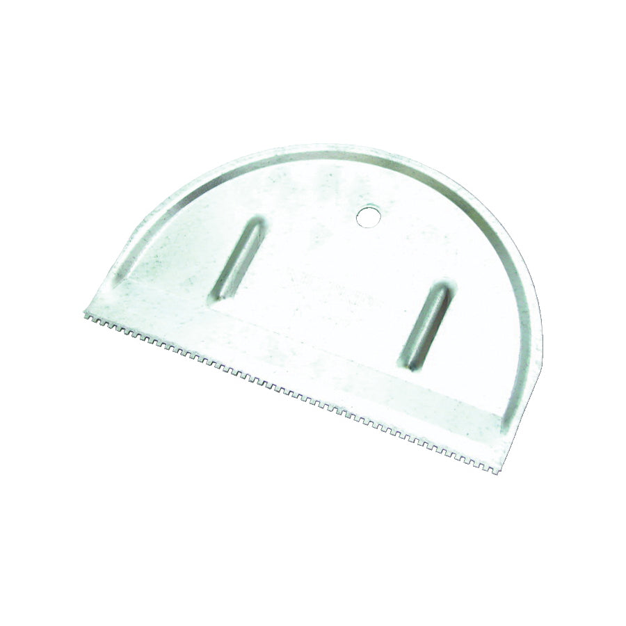 Made of galvanized material to prevent rust. Ribbed blade for rigidity and strength. Use on asphalt tile, linoleum and vinyl. 1/16 in W x 1/16 in D x 1/16 in H notches.
