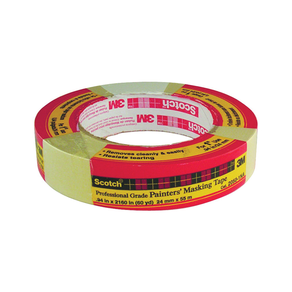 Scotch® masking tape for general painting 2050 is a beige masking tape with a medium level of adhesion specifically designed to release cleanly and easily from previously painted surfaces such as windows, door and wall trim and cabinets. Professional painting masking tape 2050 can also be used on carpets and vinyl flooring. Conforms well to most surfaces and produces good paint lines.