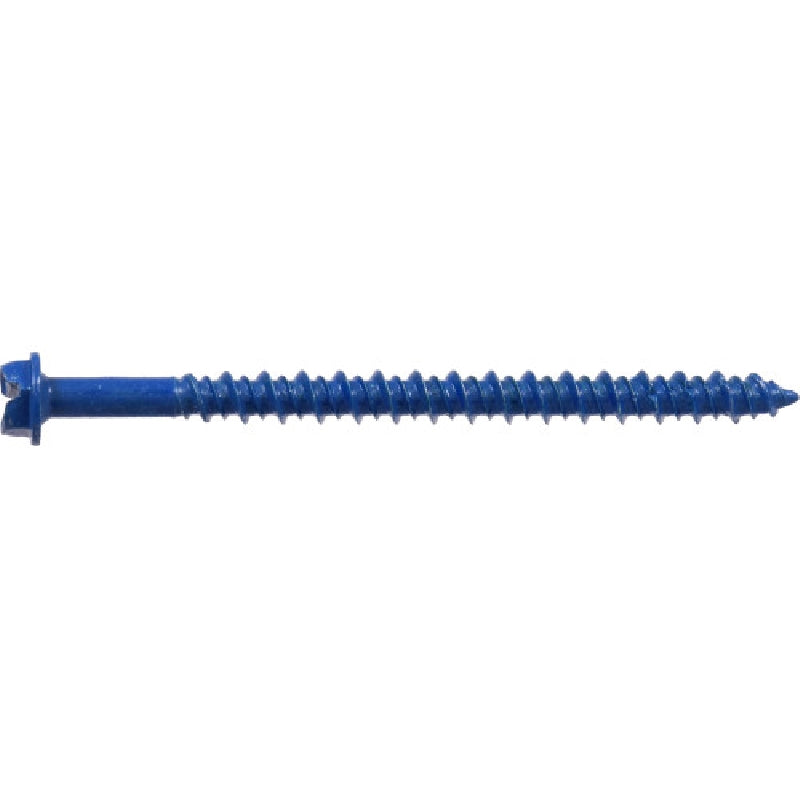 Manufactured for top performance in masonry-based applications, concrete screw anchors are designed to fasten objects into concrete, brick and block. The blue perma-seal finish on this tapper provides long-lasting corrosion protection. Its high-low chiseled threads allow for a steady drive and installation torque reduction. Its various features and state of the art design make this anchor an excellent alternative to expansion anchors, plugs and lag shields. General applications and uses include window installations, interior hand rails, metal door frames, joint flashing, storm shutters, interior lighting fixtures, thresholds and screened enclosures. The slotted hex washer head tapper concrete screw anchor is quick to use and easily installed with a matched tolerance drill bit, which is included with C-Paks. Tapper screws are perfect for interior and exterior projects. Use for light to medium-duty applications.