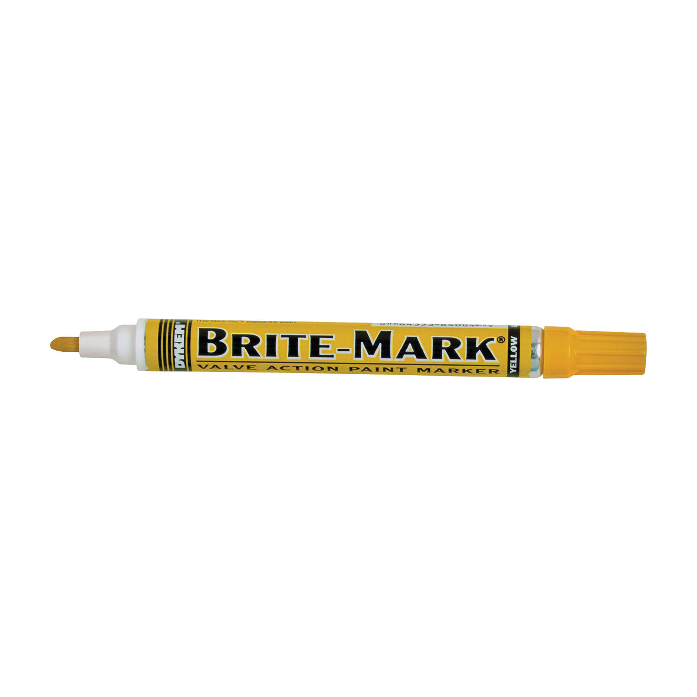 Dykem® BRITE-MARK® is a general-purpose permanent marker ideal for making clear, bold markings on almost any surface. Its quick-drying, oil-based paint withstands indoor and outdoor conditions without fading, chipping or losing its opacity. Dykem® BRITE-MARK® can be used to permanently identify inventory, assemblies, tools, finished products or work in progress while resisting most work related abuses or compounds.