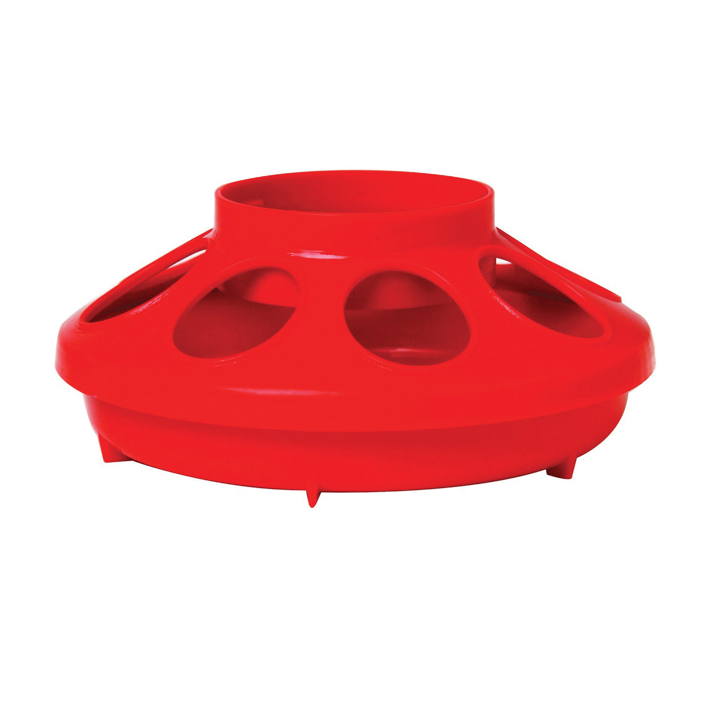 Feeder base combines with the Little Giant 1 qt screw-on feeder/waterer jar to make a gravity feeder for baby chicks and small birds. Features eight openings, with ribs to minimize feed overflow and spillage.