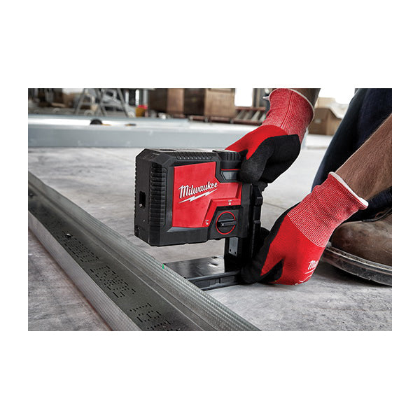 Our USB rechargeable green three point laser is powered by REDLITHIUM™ USB, delivering you all-day runtime and uncompromised visibility. The high-intensity laser beams allow the green points to be visible up to 150 ft for fast, accurate point transfer. The integrated adjustable clearance bracket enables this three point laser level to easily fit over steel stud track or create clearance for marking the floor. This green laser level features amplified rare earth magnets, providing a strong hold onto metal surfaces. The integrated screw and nail hang holes allow easy and efficient setup in any environment. You can charge REDLITHIUM™ USB batteries inside the laser via a micro USB or swap it out with additional REDLITHIUM™ USB batteries for virtually no downtime. The Milwaukee® USB rechargeable green three point laser is covered by a 2-year warranty.
