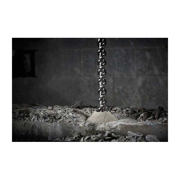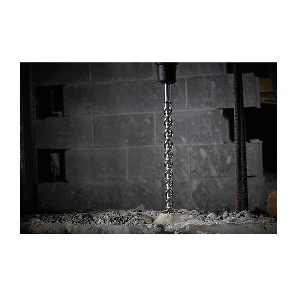 Milwaukee® SDS-Max drill bits provide faster drilling speeds, increased life and more cordless efficiency. Breaker point pulverize the material leading to up to 20% faster drilling speeds. Rebar guards protect the bit when hitting hard aggregate and rebar leading to longer life. Variable flutes remove the dust out of the hole more efficiently resulting in up to 15% more holes per battery charge. Wide flute entrances lead to faster drilling speeds, while reinforced flutes prevent bit breakage, rendering increased durability in tough concrete applications. The centering tip allows for exact spot drilling. All SDS-Max drill bits meet the ANSI specification for drilling holes for anchor applications and include wear mark indicator when signifying when the bit no longer meets the ANSI specified.