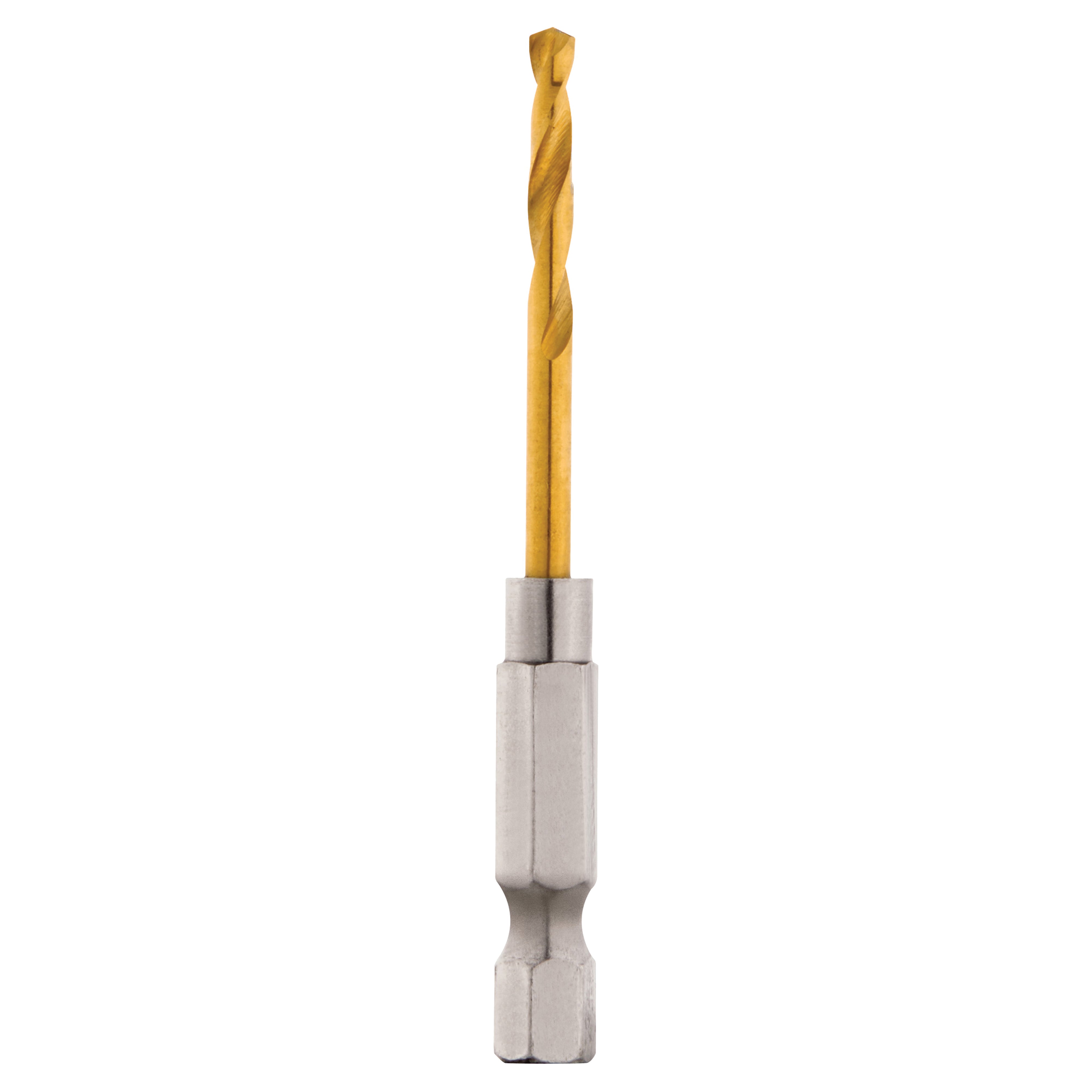 • Milwaukee 48-89-4605 Impact Drill Bit, 1/8 in Dia, 2.62 in OAL, Twist Flute, 1/4 in Dia Shank, Hex Shank