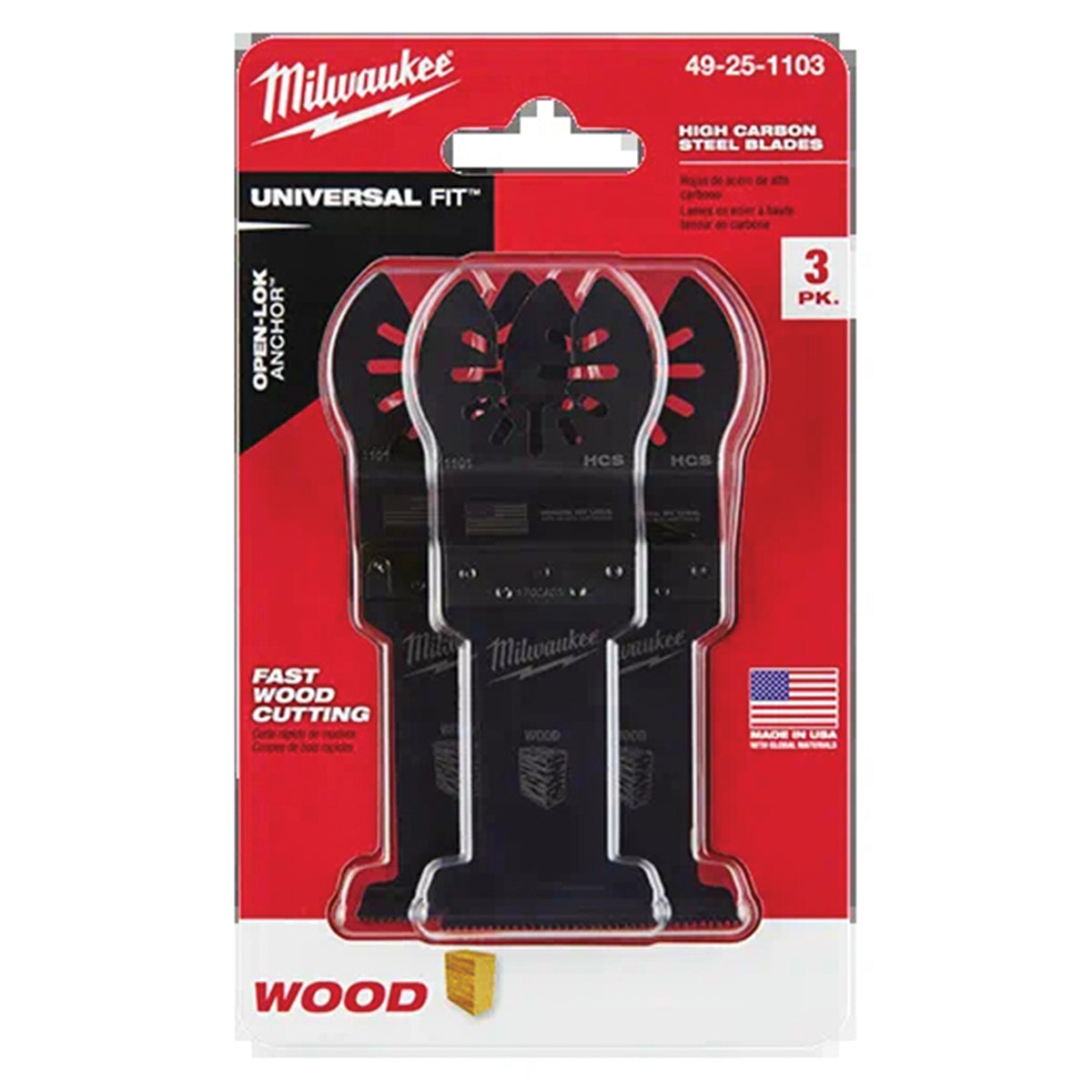 Our universal fit OPEN-LOK™ oscillating multi-tool HCS wood blades are made from premium HCS with an aggressive tooth design and longer length, ideal for plunge cuts. These features provide you with fast cutting performance in wood, PVC, drywall and other soft materials. These Milwaukee® multi-tool blades are designed and made in the USA with global materials.