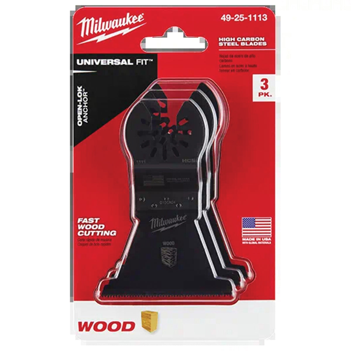 Our universal fit OPEN-LOK™ oscillating multi-tool HCS wood blades are made from premium HCS with an aggressive tooth design and longer length, ideal for plunge cuts. These features provide you with fast cutting performance in wood, PVC, drywall and other soft materials. These Milwaukee® multi-tool blades are designed and made in the USA with global materials.