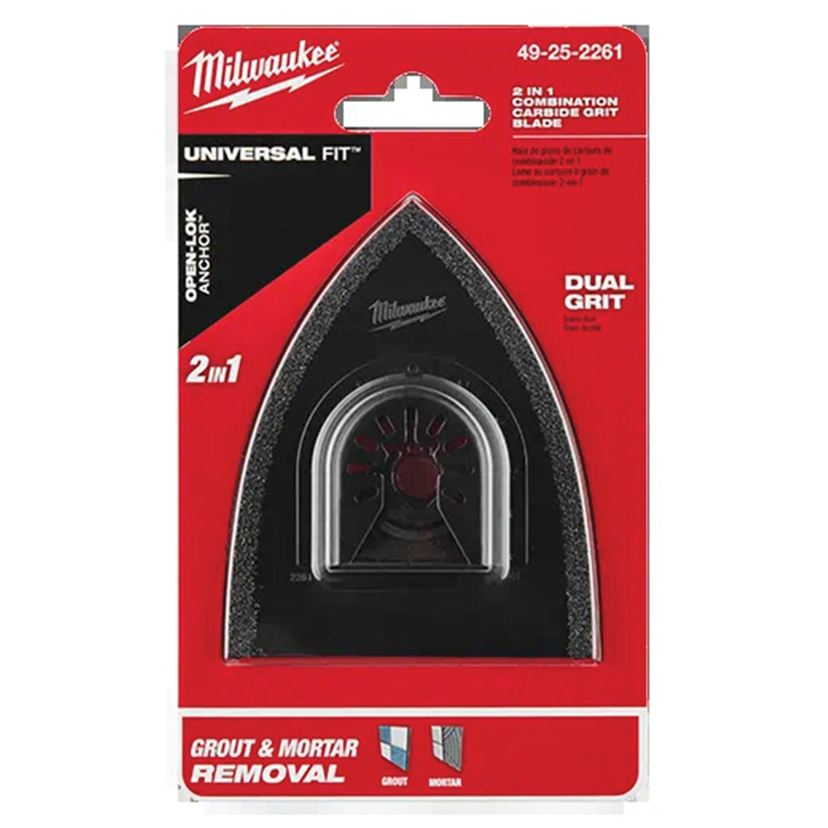 Our universal fit OPEN-LOK™ two-in-one hybrid carbide grit blade one pack is designed for oscillating multi-tools. This unique dual carbide grit two-in-one blade gives you an all-in-one tool for tile work. The fine grit carbide on the edge allows you to quickly remove grout and the coarse carbide grit on the bottom of the blade removes mortar fast. The multi-tool blade features Milwaukee® universal fit OPEN-LOK™ anchor for quick blade changes.